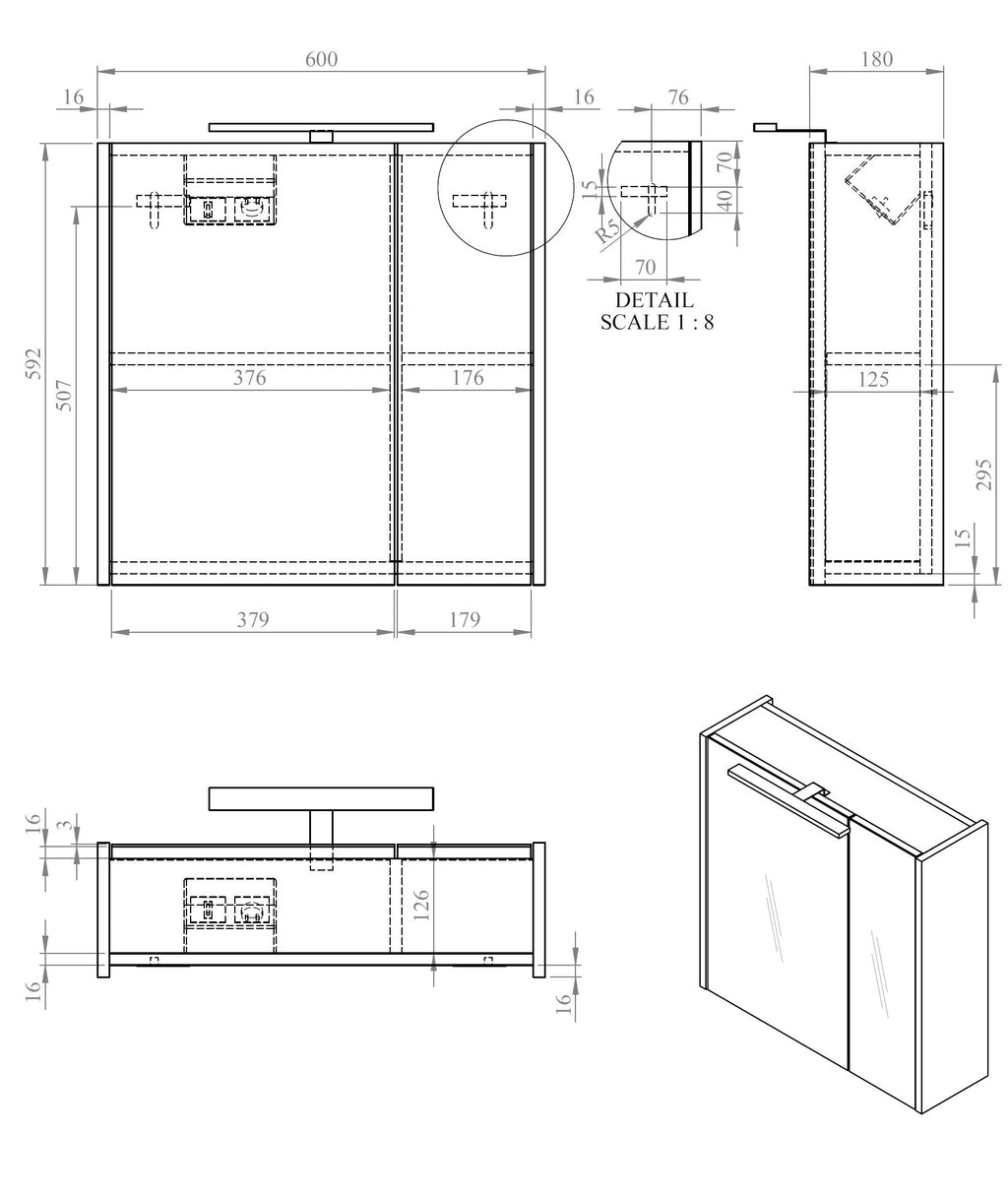 Happy MDF spiegelkast + verlichting 60x60cm