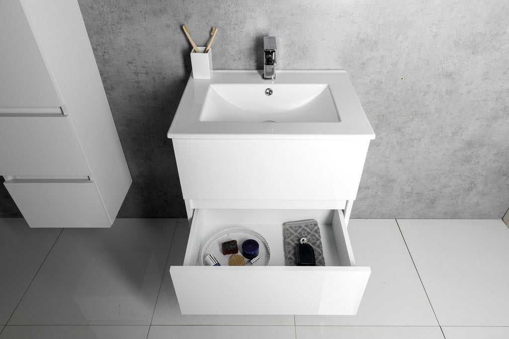 Met zijn nette afmeting en moderne look is de Aqualine Paneda 75 cm een stijlvolle keuze. Het meubel is gemaakt van gelamineerd MDF, afgewerkt in glans wit en voorzien van twee greeploze softclose laden voor optimaal comfort.