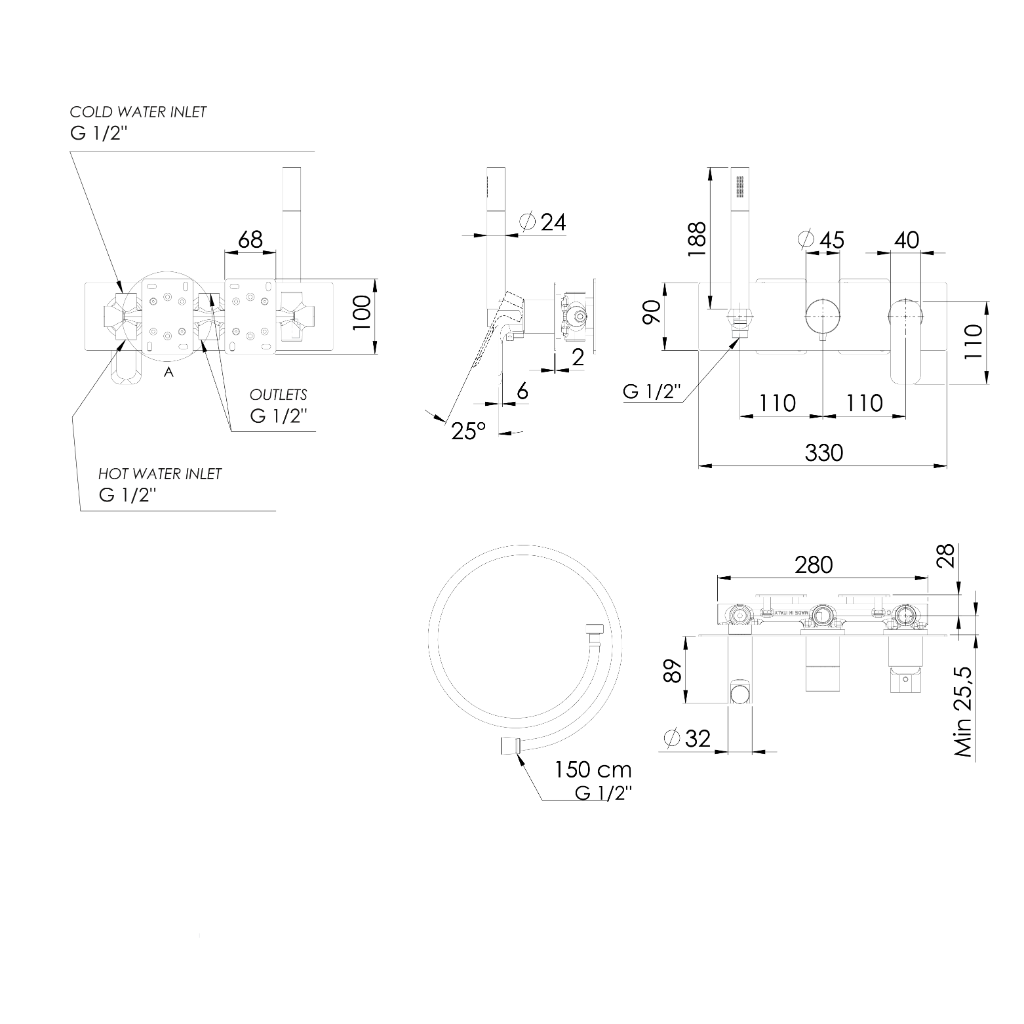 - Afmetingen: Zie technische tekening bij de afbeeldingen
