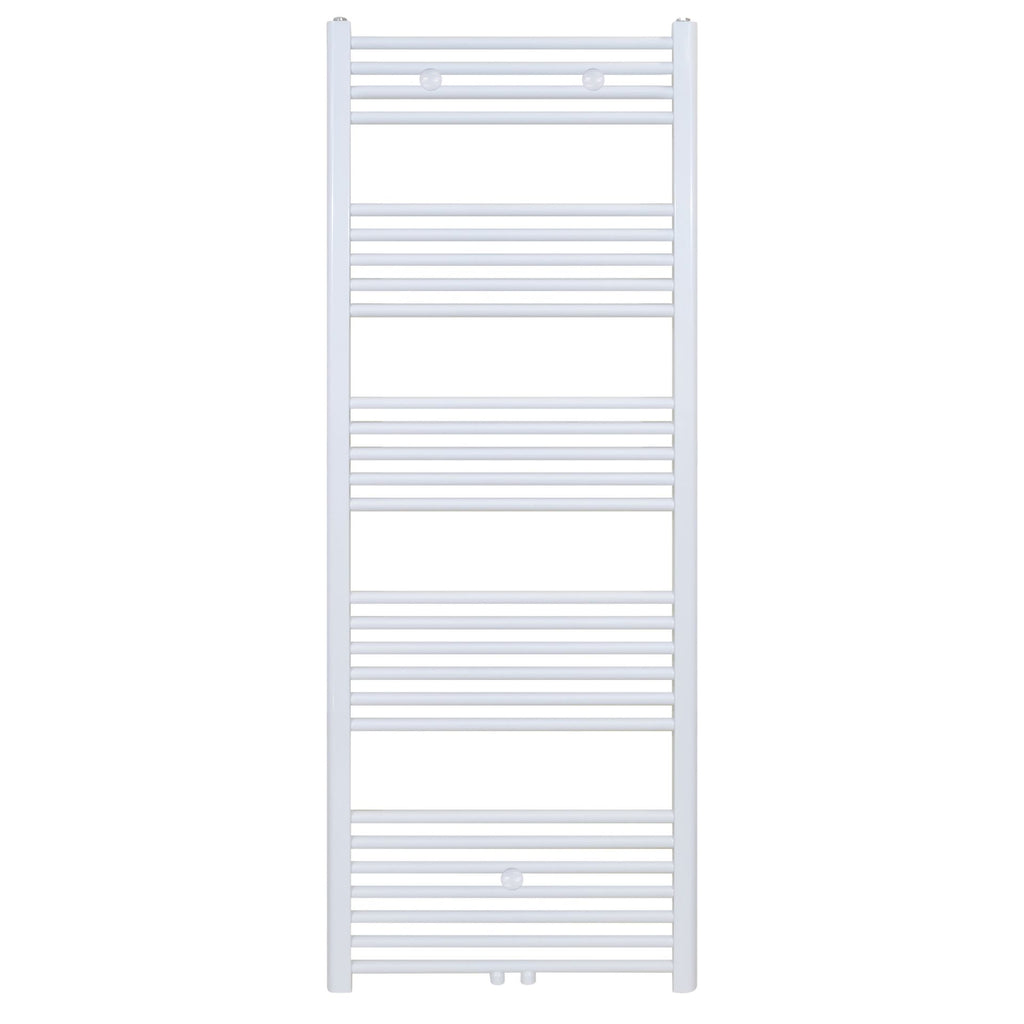 Belrad Handdoekradiator glans wit 160x50 cm met een vermogen van 721 Watt inclusief ophanging. De radiator kan met een midden onder aansluiting aangesloten op de centrale verwarming of met een links/rechts aansluiting