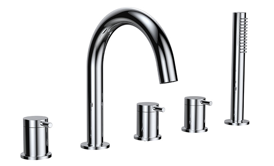 Complete badkraan met aansluitslangen, verzonken handdouche, hoge baduitloop, omstelknop]