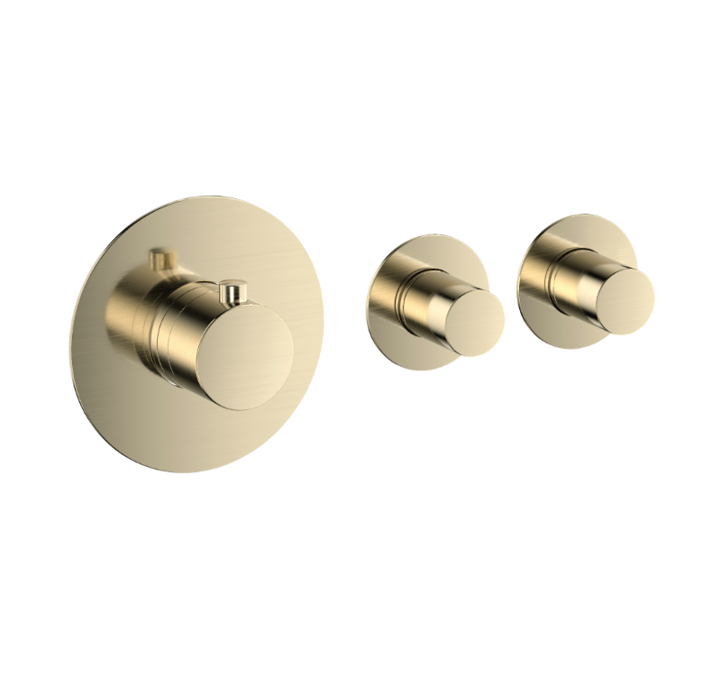 Luzi Badset inbouw deluxe met box thermostaat, muurbevestiging / doucheslang, staafhanddouche rond Goud Geborsteld