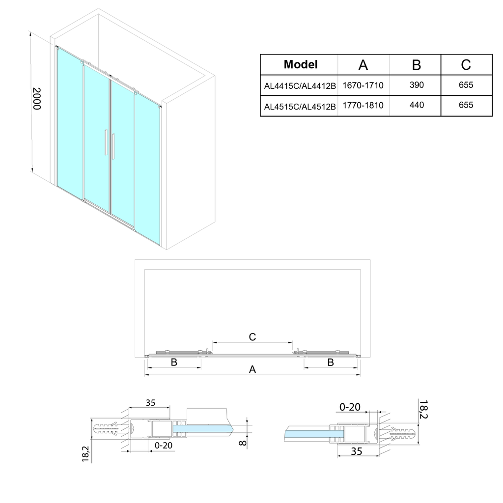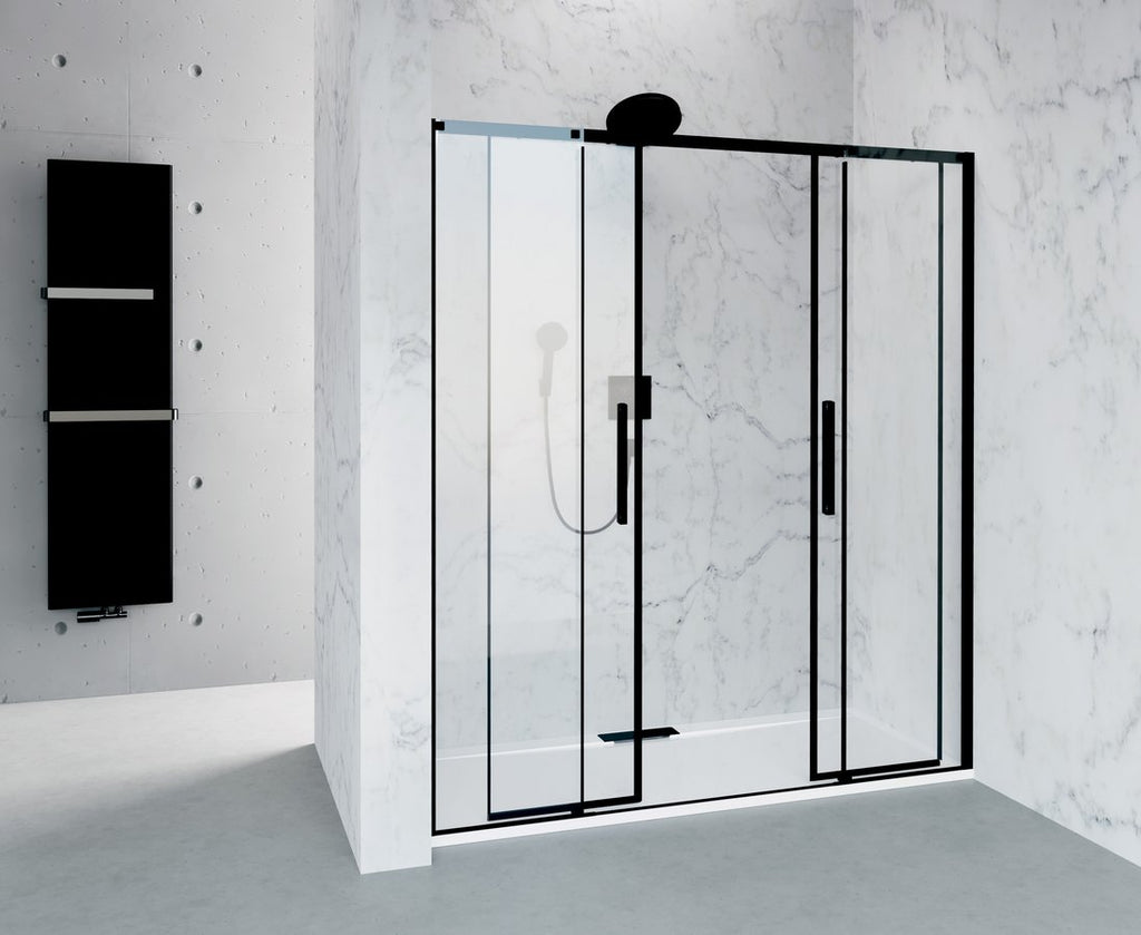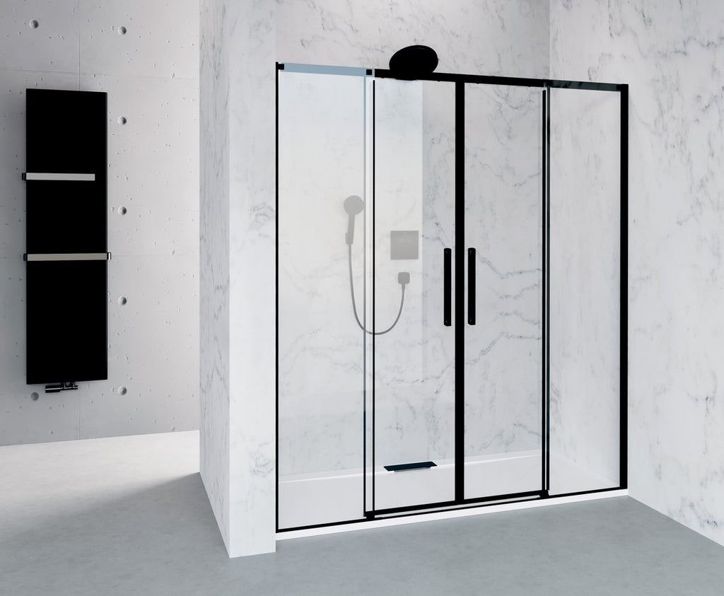 Douche nisdeur Altis Black 170x200cm met dubbele schuifdeuren is gemaakt van 8mm helder veiligheidsglas en heeft een mat zwart profiel. De breedte is verstelbaar tussen 1670-1710 mm. Met de Polynosan Altis Black douche schuifdeur in uw badkamer geeft u een minimalistische fabrieksuitstraling aan uw doucheruimte. Omdat het glas is voorzien van antikalk coating is het makkelijk om deze douchedeur schoon te houden.