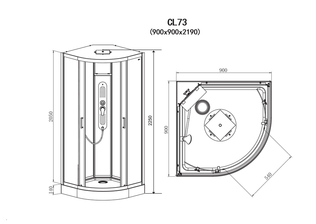 De complete douchecabine Sky1 kan overal waar een aan en afvoer van water aanwezig is gemonteerd worden. De cabine kan kitvrij gemonteerd worden via het Sanotechnik quik line systeem waardoor de cabine snel te monteren is.