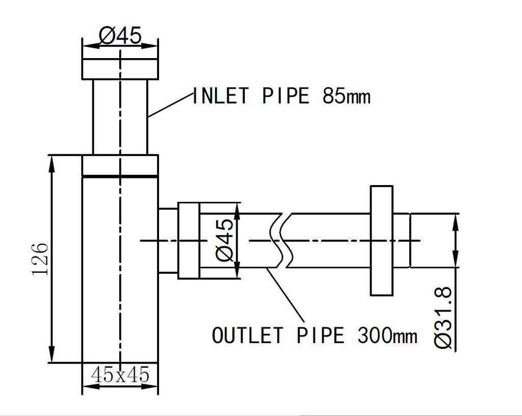 Star sifon vierkant 5/4" x 32 mm geborsteld staal