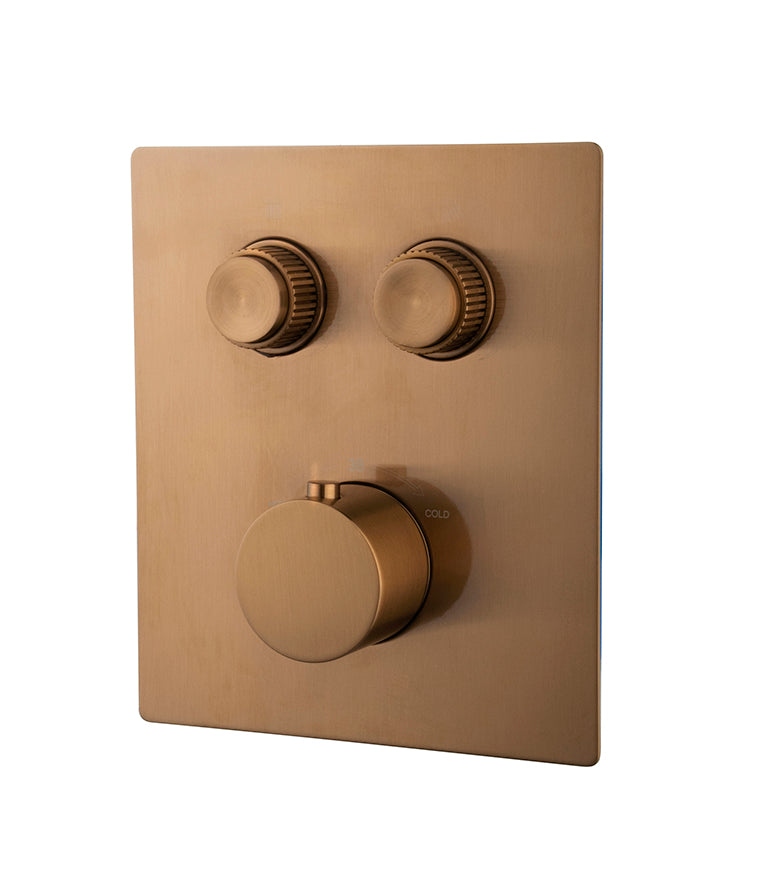 Caral Klik Pro afbouwdeel inbouwthermostaat 2 weg geborsteld brons koper