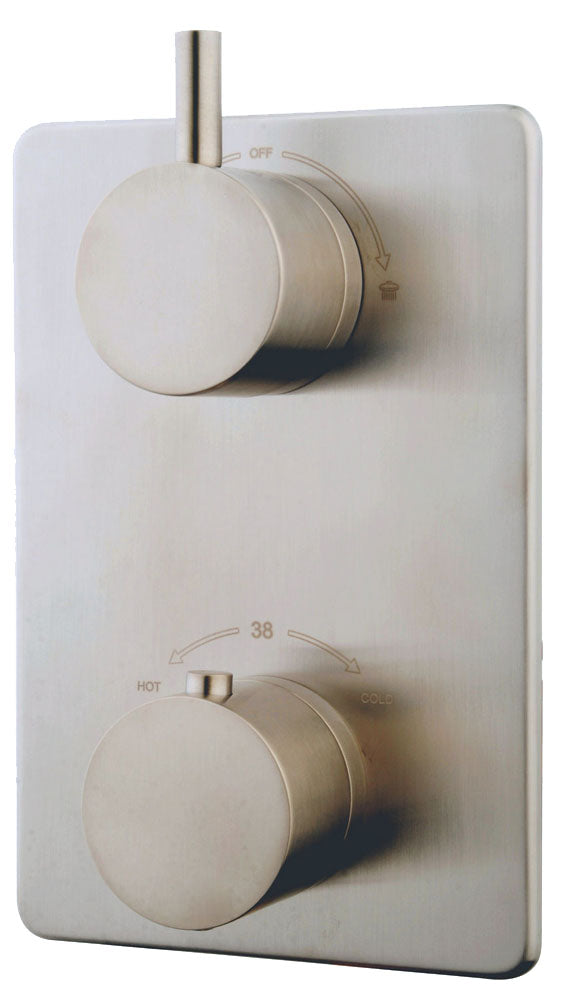 bestaande uit thermostaatknop, omstelknop(pen) en bodemplaat.