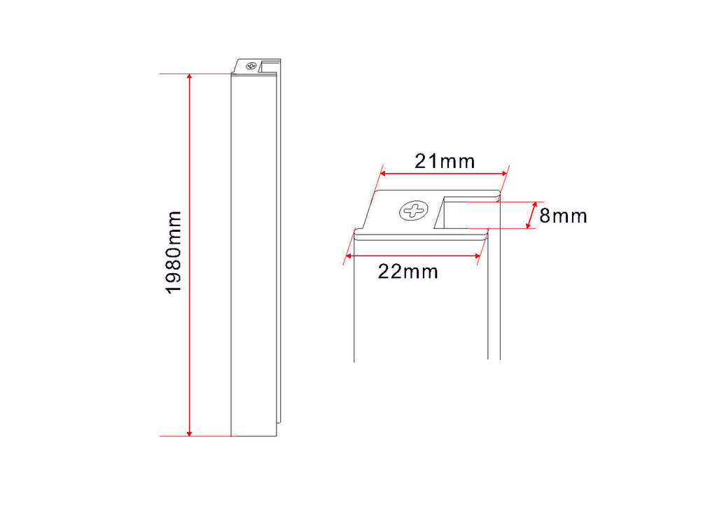 set magneetstrip voor 1/4 cabine met 2 draaideuren 8mm chroom