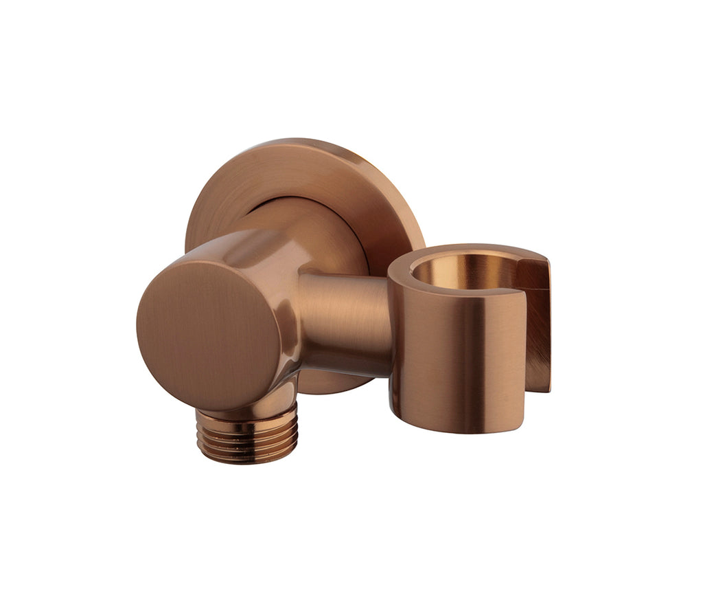 Wandaansluitbocht met kantelbare handdouchehouder rond 1/2" geborsteld brons koper