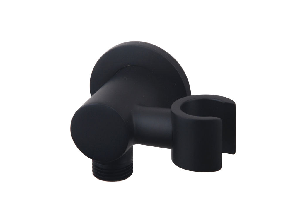 UniMatch wandaansluitbocht met kantelbare handdouchehouder rond 1/2" mat zwart