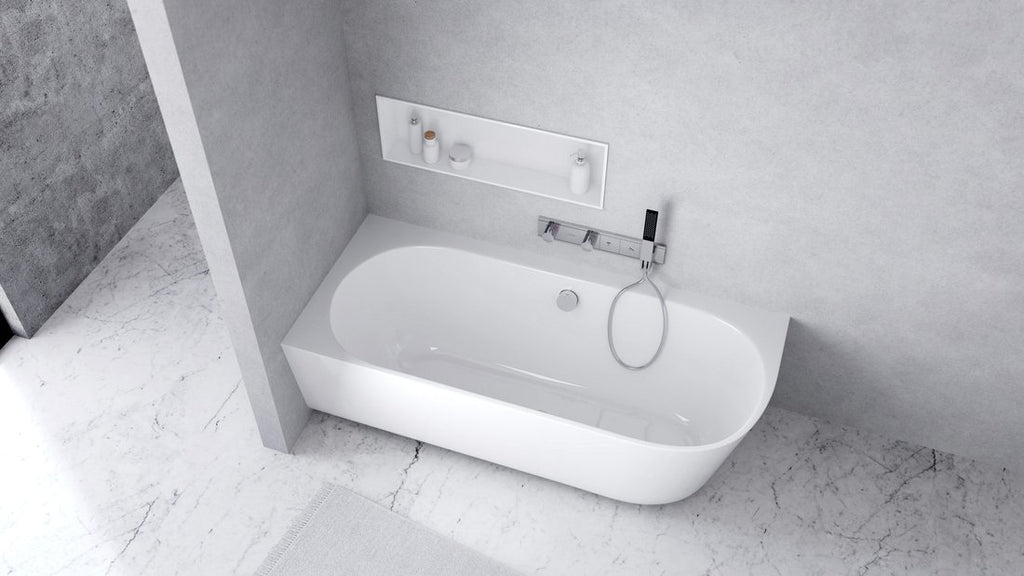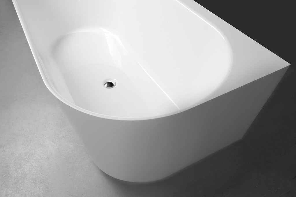 De Sussi is een vrijstaand hoekbad in Cast Marble, 150x70x49,5cm, links uitvoering in Wit. Het bootst de luxe marmerlook na, voelt warm aan en blijft dankzij de massieve opbouw jarenlang mooi. Let op: bij montage dient de sifon in de vloer verzonken te worden.
