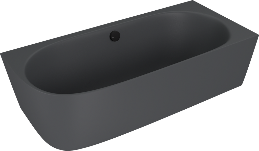 De Sussi is een vrijstaand hoekbad in Cast Marble, 160x70x50cm, rechts uitvoering in Antraciet/Mat. Het bootst de luxe marmerlook na, voelt warm aan en blijft dankzij de massieve opbouw jarenlang mooi. Let op: bij montage dient de sifon in de vloer verzonken te worden.