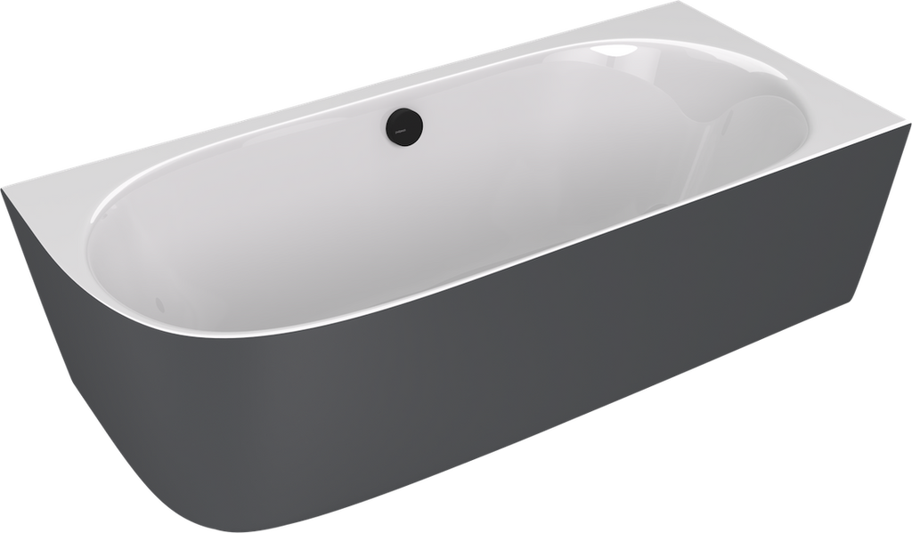 De Sussi is een vrijstaand hoekbad in Cast Marble, 160x70x50cm, rechts uitvoering in Wit/Antraciet/Mat. Het bootst de luxe marmerlook na, voelt warm aan en blijft dankzij de massieve opbouw jarenlang mooi. Let op: bij montage dient de sifon in de vloer verzonken te worden.