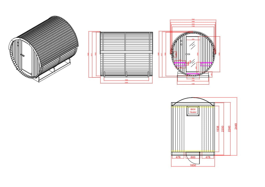 - 8 kW saunaoven incl. saunastenen