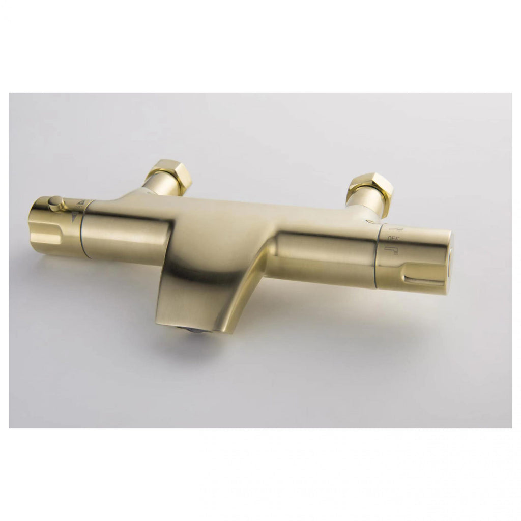Thermostatische badkraan Granada in brushed gold – veilig en constant douchen en baden.