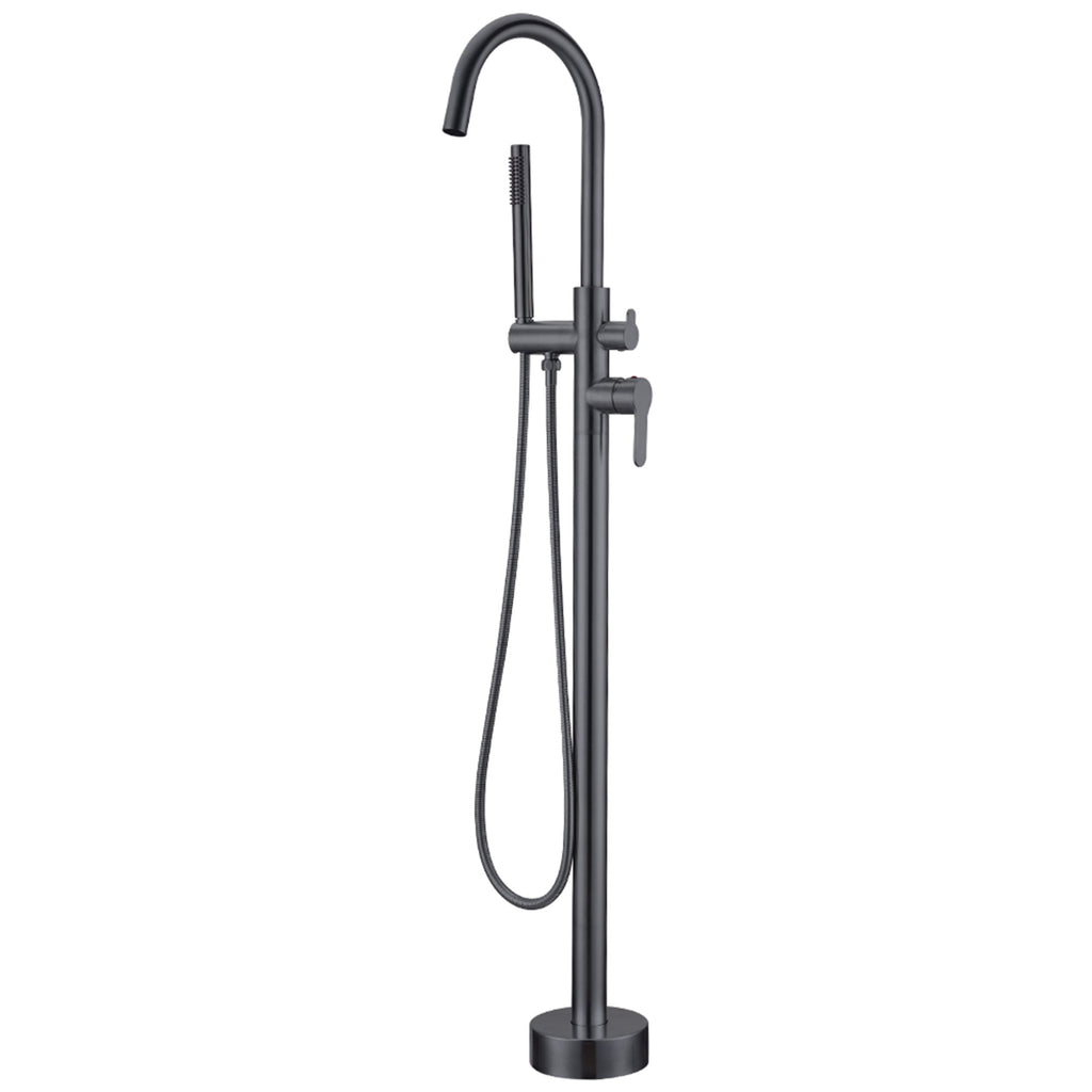 Vrijstaande badkraan Zaragoza in gun metal – strak rond ontwerp voor een ruimtelijk effect.