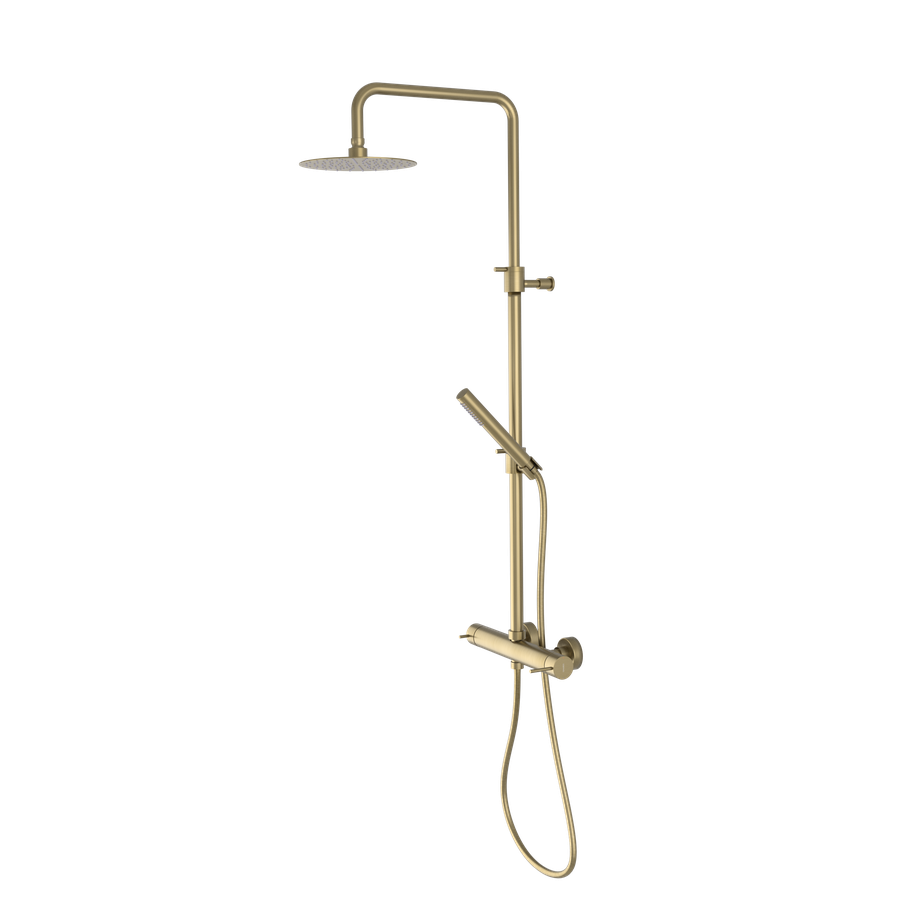 De Ultramix doucheset in mat goud is een stijlvolle keuze voor een moderne badkamer. Gemaakt van messing met een duurzame afwerking en ontworpen voor comfortabele, dagelijkse douchebeurten.