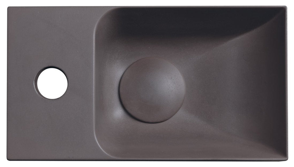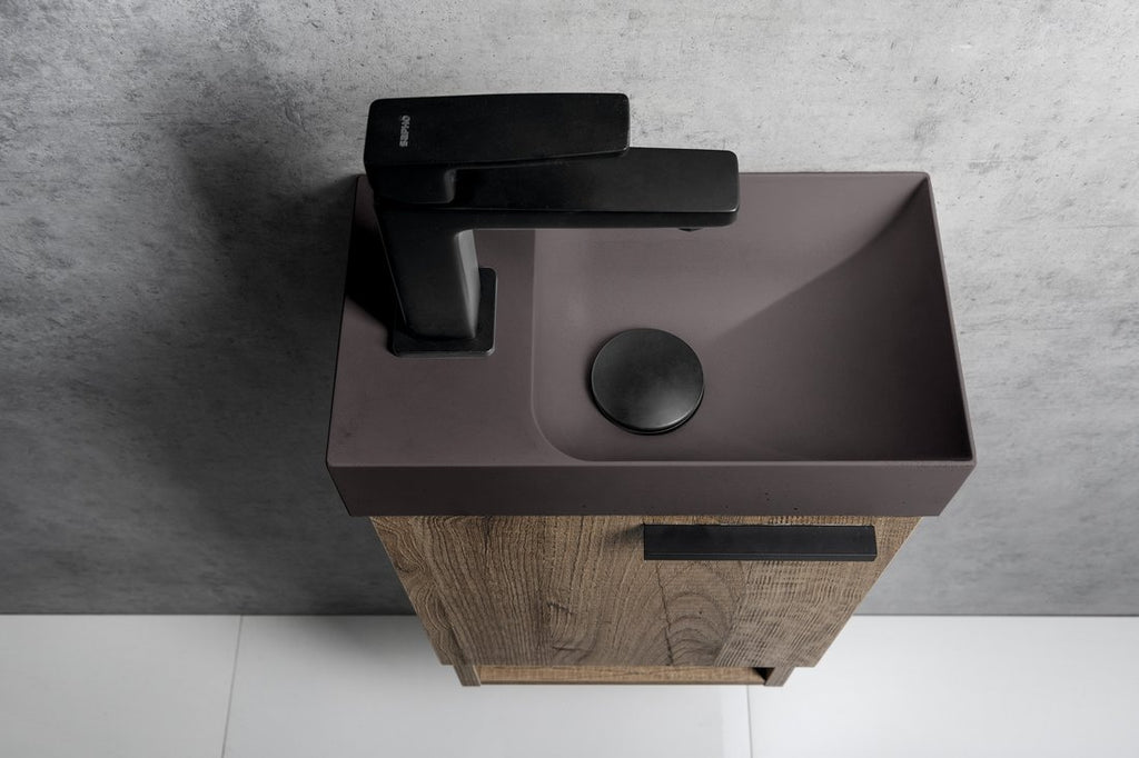 De Piccolino Betonnen Toiletfontein 30,8 x 17 cm Kraan Links Donkerbruin Mat is een kleine toiletfontein die perfect past in een compact toilet. Je combineert een luxe uitstraling met een slimme maatvoering.
