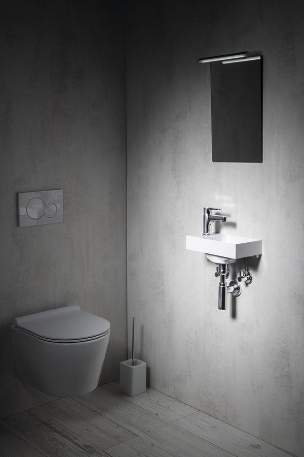 De Piccolino Cast Marble Toiletfontein 30,8 x 17 cm Kraan Links Wit Mat is een kleine toiletfontein die perfect past in een compact toilet. Je combineert een luxe uitstraling met een slimme maatvoering.
