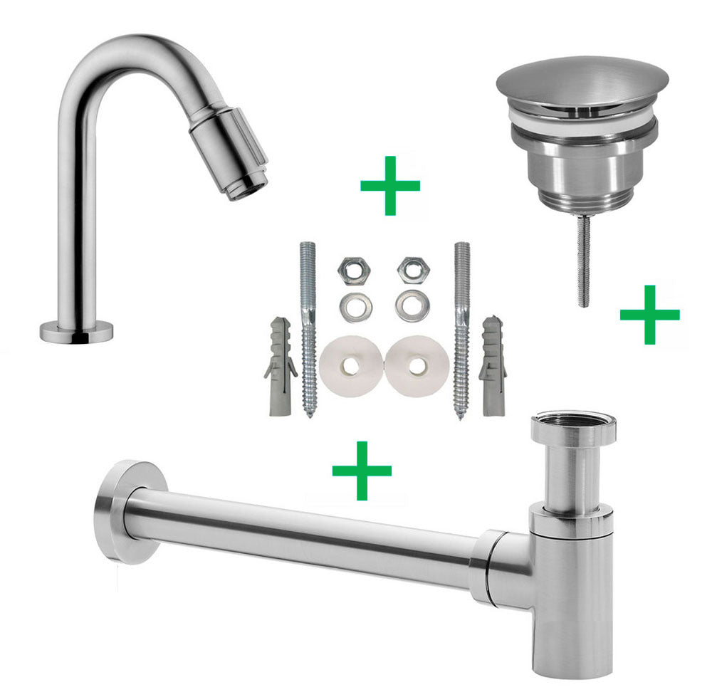 Set Victoria toiletkraan + afvoer/bev. geb.staal