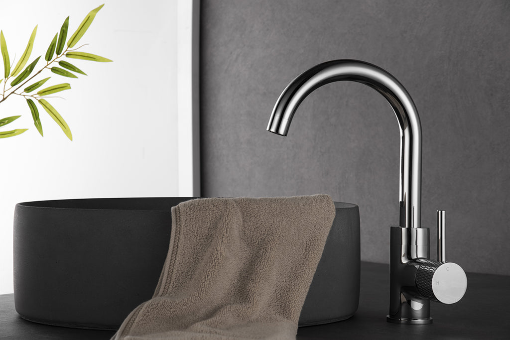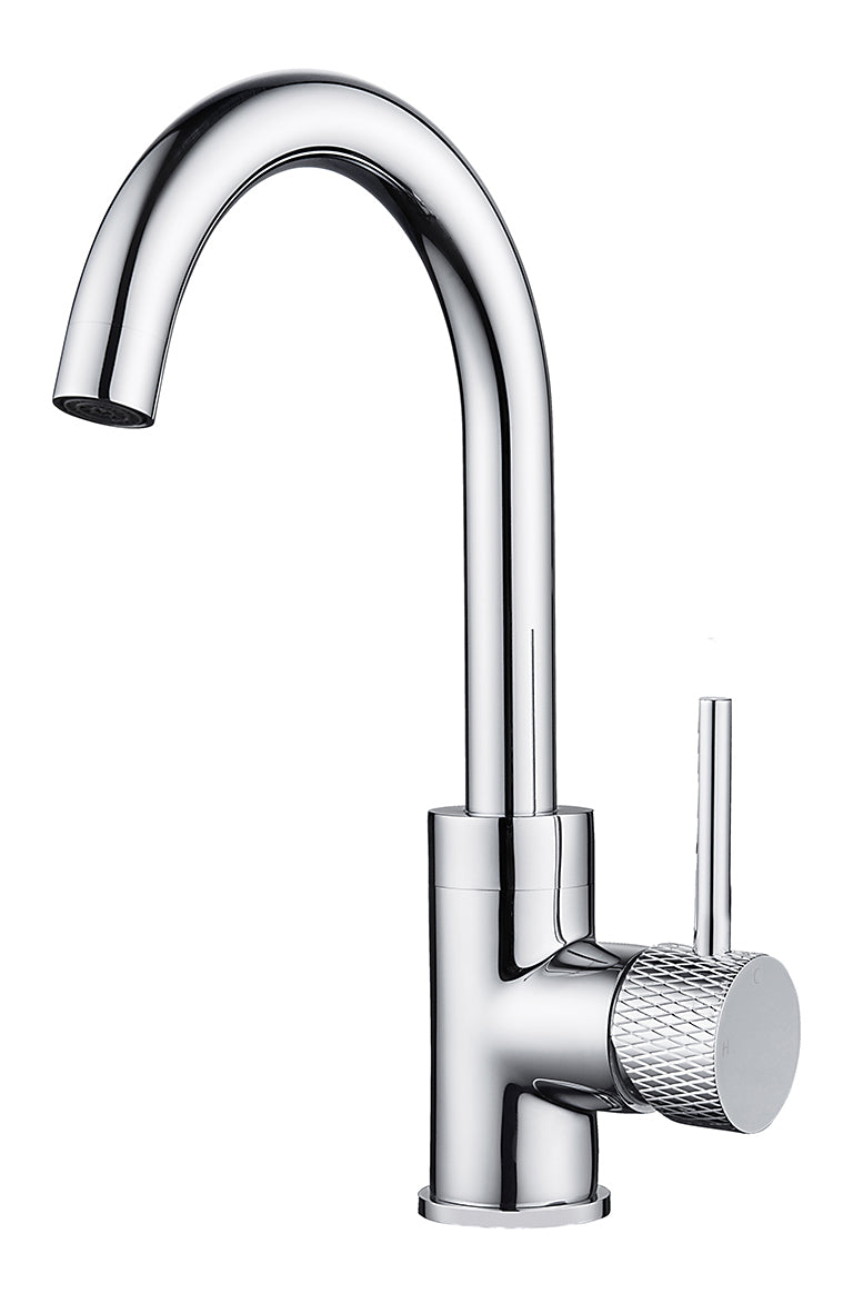 Ribbd wastafelkraan met draaibare uitloop en coldstart chroom