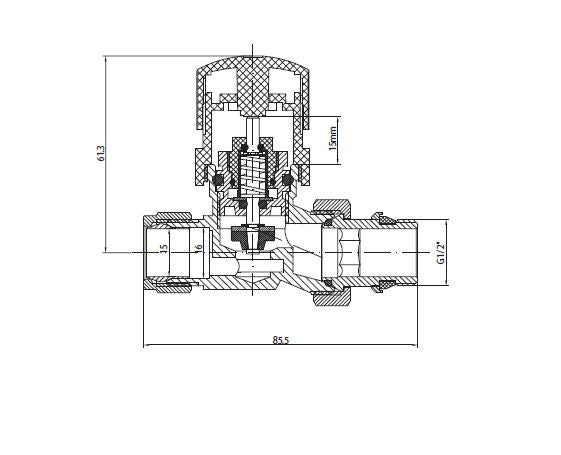 Thermostatische radiatorkraan recht 1/2x15mm