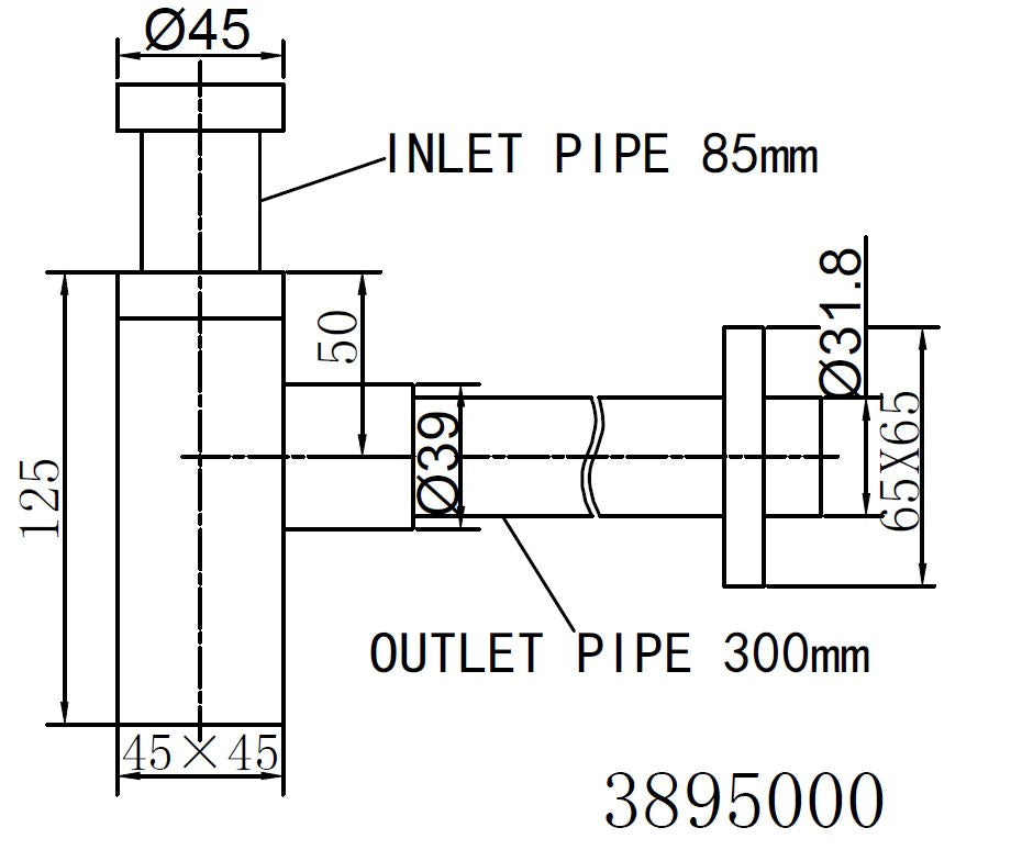 Square sifon 5/4 x 32 mm RVS-look