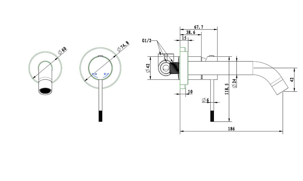 Ore-Decorata inbouw-wandmengkraan uitl=20cm RVS-304