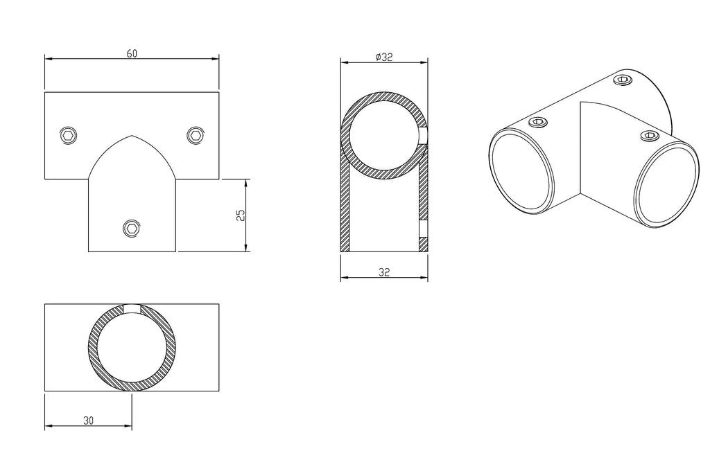 Chroom T-verbindingsstuk tbv: muurstang Erico inloopdouche