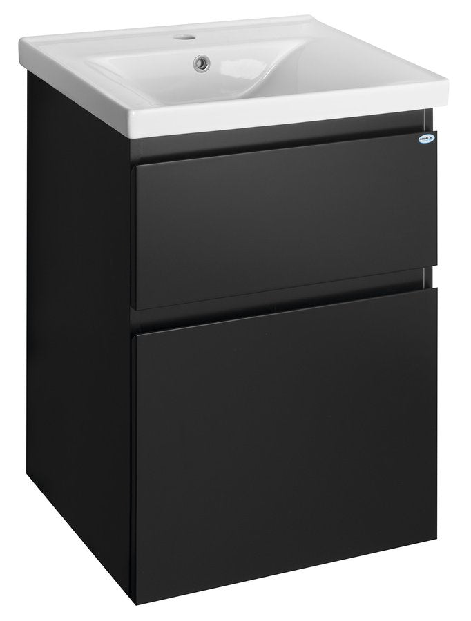Badmeubel onderkast Altair in mat zwart met greeploos front en Hettich soft-close. De kast van 55 cm breed combineert een strak design met praktische opbergruimte voor een opgeruimde badkamer. Afmetingen: 55×45×72 cm (b×d×h). Combineer met wastafel voor een complete set. Materiaal: MDF gelamineerd. Onderhoudstip: gebruik PRO COMFORT en TOP COMFORT voor het beste resultaat.