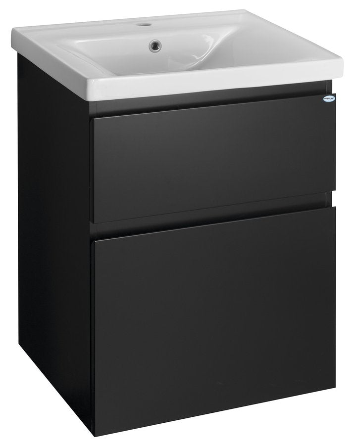Badmeubel onderkast Altair in mat zwart met greeploos front en Hettich soft-close. De kast van 60 cm breed combineert een strak design met praktische opbergruimte voor een opgeruimde badkamer. Afmetingen: 60×45×72 cm (b×d×h). Combineer met wastafel voor een complete set. Materiaal: MDF gelamineerd.