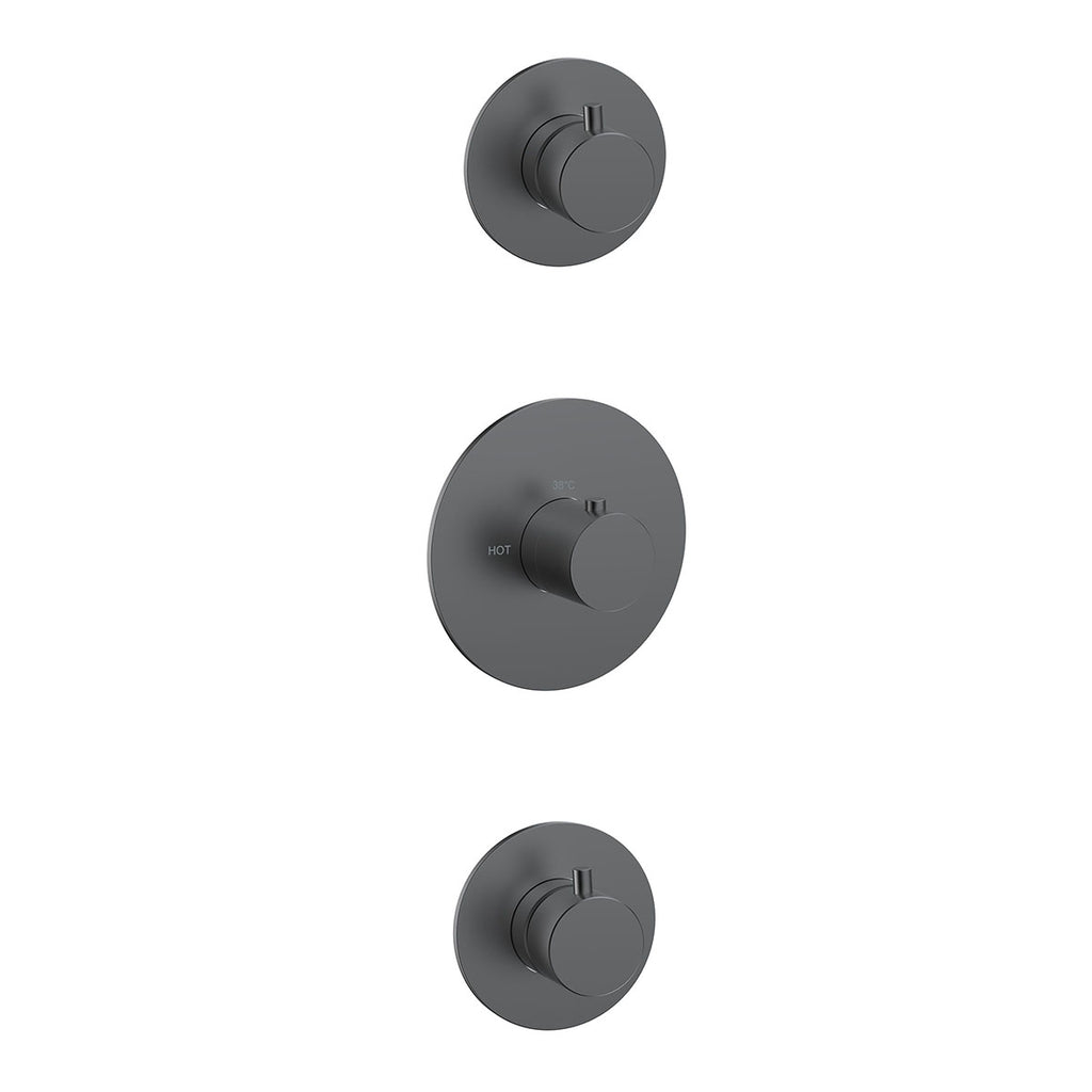 Het bevat 1 grote, ronde rozet, Ø9,6 cm voor de thermostatische douchemengkraan en 2 kleine rozetten, Ø 8 cm voor de stopkranen.