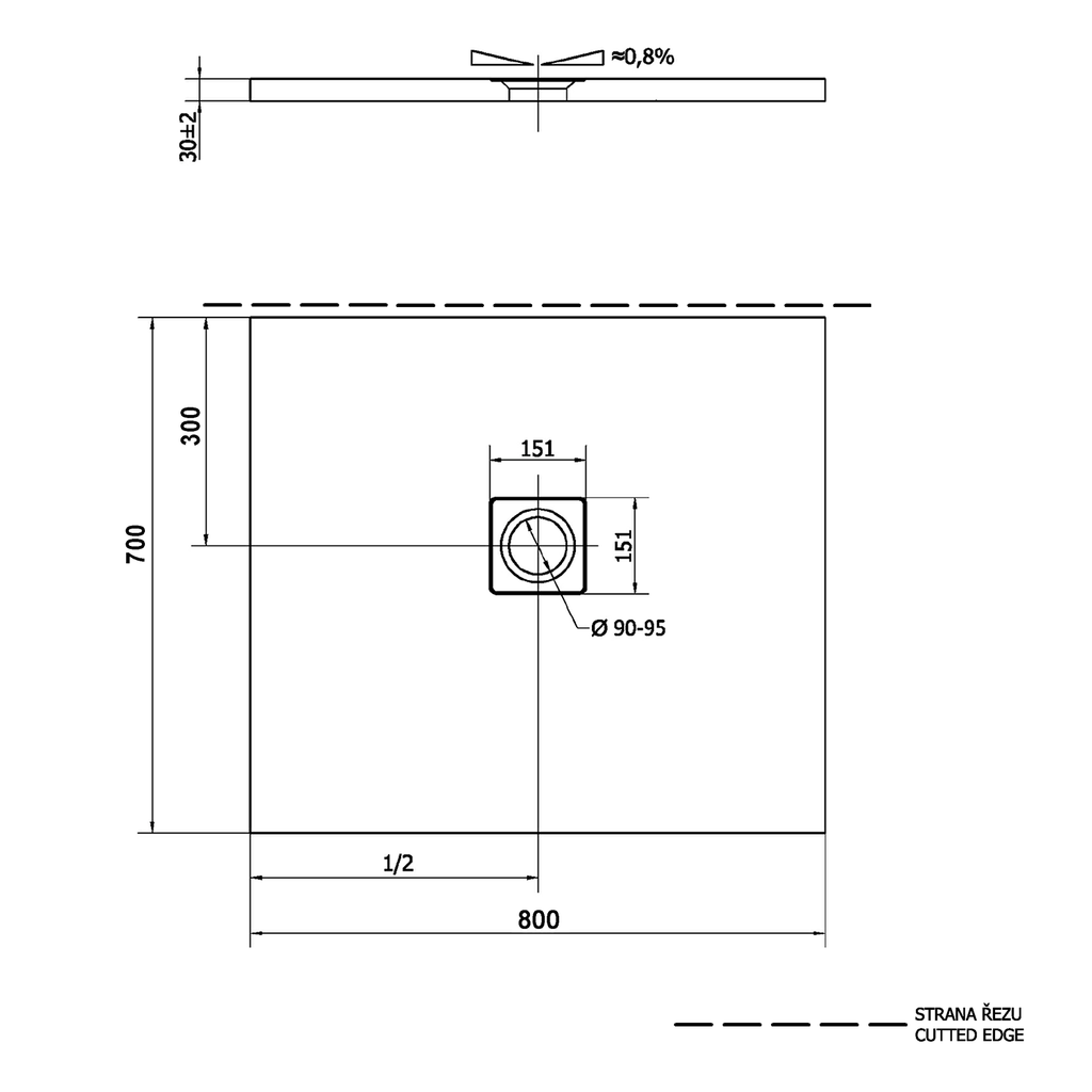 - Afvoer: Ø90 mm (geschikt voor standaard douchebakafvoeren)