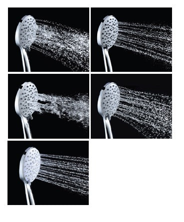 De handdouche biedt vijf verschillende straalsoorten en is uitgerust met anti-kalk noppen, zodat kalkafzetting eenvoudig kan worden verwijderd door er lichtjes over te wrijven met een doek.