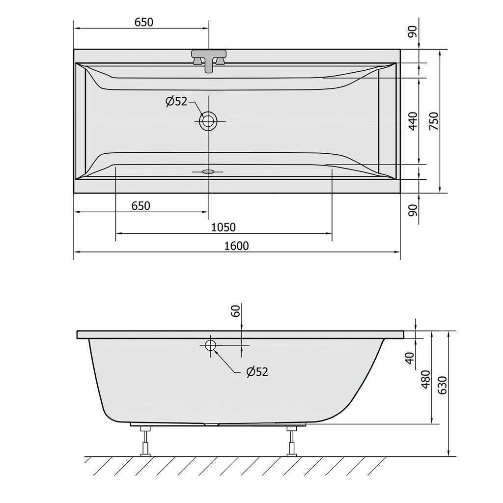 olysan Cleo Inbouw Ligbad – 160×75 cm – Acryl – 230 Liter