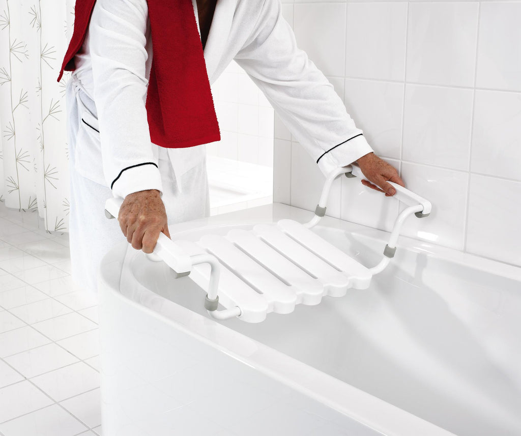 Veiligheidsinformatie: het badzitje moet stevig en veilig op de rand van de badkuip rusten.