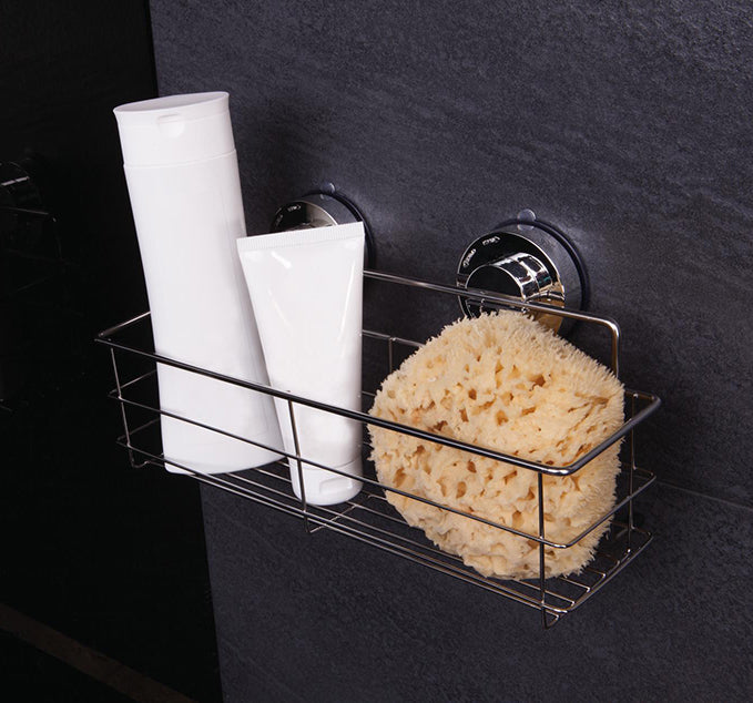 Dit doucherekje is gemaakt van kunststof en roestvrijstaal en hang je door middel van de zuignappen makkelijk op in de badkamer.